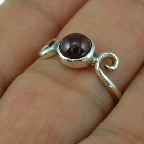Delicate Silver Spiral Ring set w/ Garnet Stone, r70