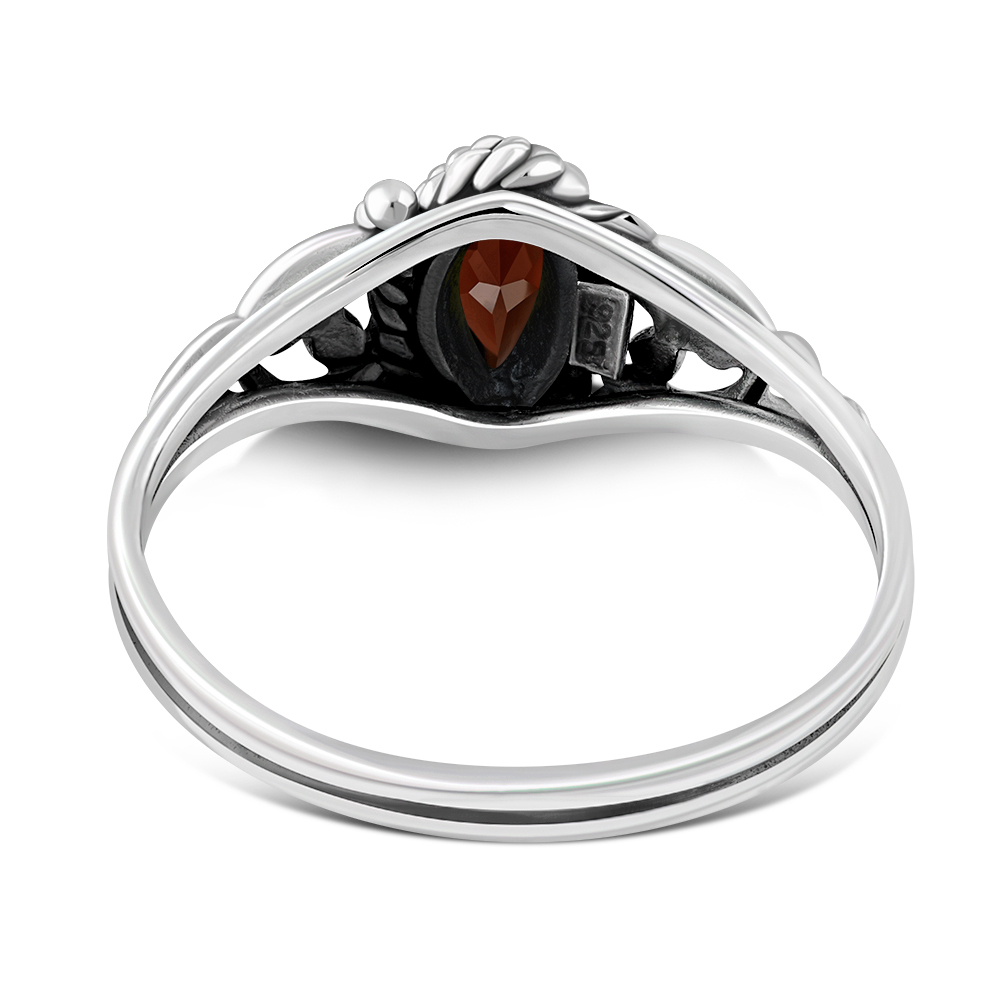 Sterling Silver Garnet Leaves Ring, Garnet Stone Ethnic Silver Ring,