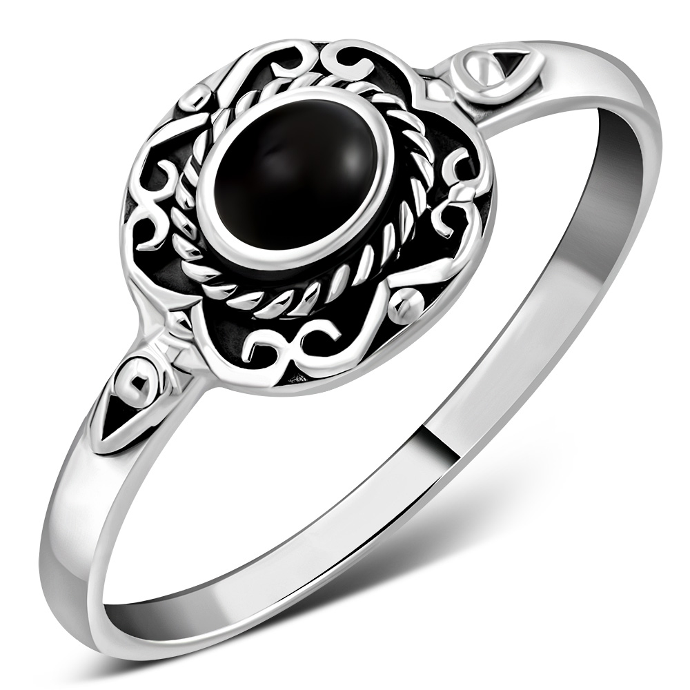 Theme: Ethnic Style Black Onyx Silver Ring.