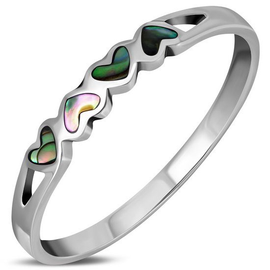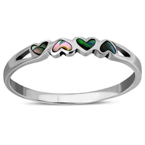 Hearts Abalone Sea Shell Silver Band Ring, r485