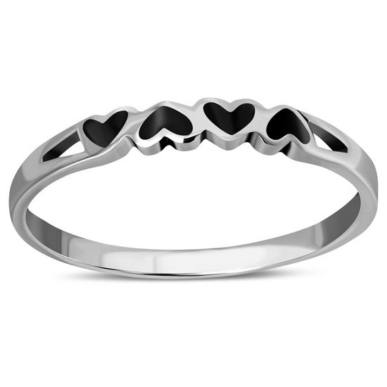 mother of Pearl Silver Ring, Hearts Black Onyx Silver Ring, Ethnic Heart