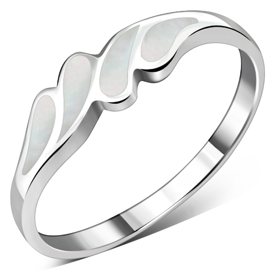 Mother of Pearl Sea Shell Silver Drops Ring, r478