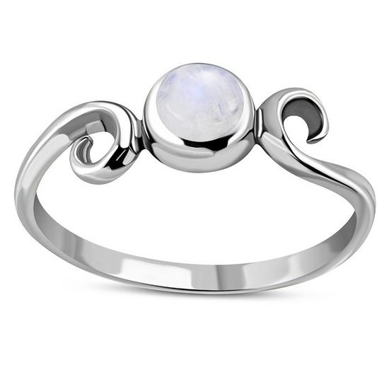 Rainbow Moonstone Delicate Spiral Silver Ring