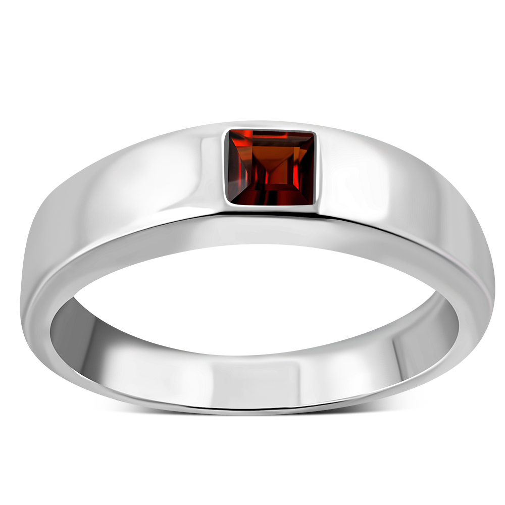 Rings, Simple Garnet Stone Solid Silver Ring.