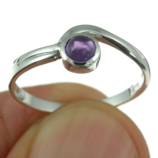Amethyst Stone Silver Band Ring, r73