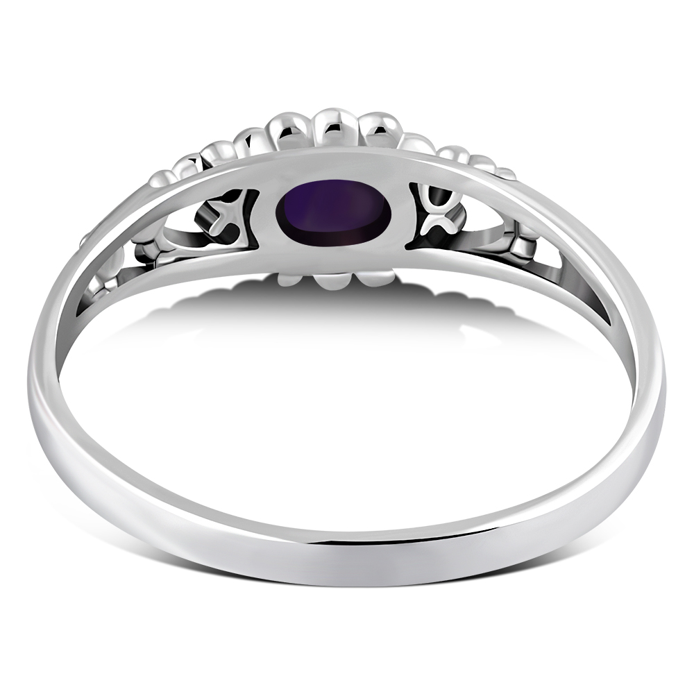 Theme: Thin Heart Amethyst Stone Silver Ring.
