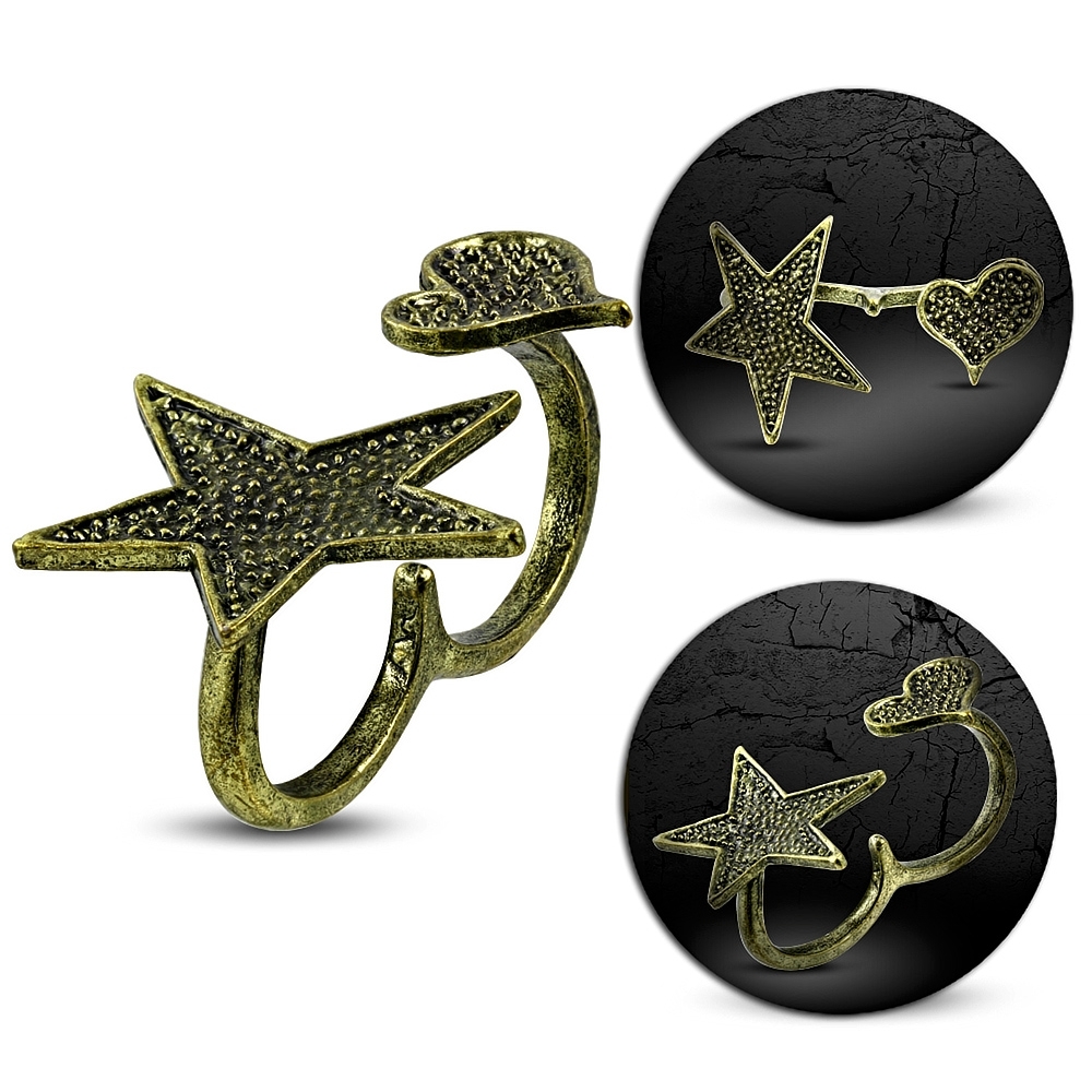 (4.8cm Wide) Fashion Love Heart Star Stretchable Two Finger Double Knuckle Ring - FRA184