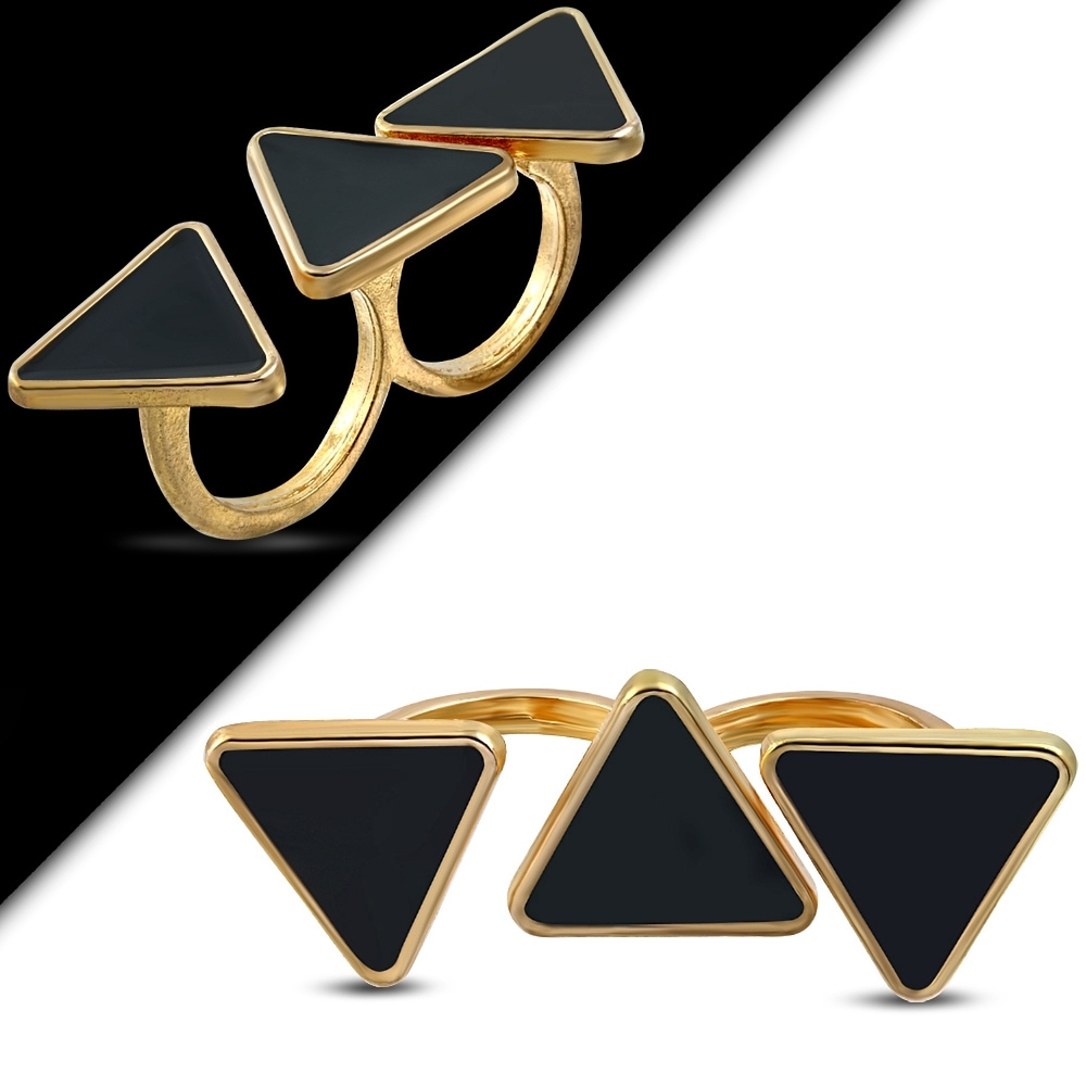 Fashion Rose/ Pink Gold Color Plated Black Enameled Tops Two Finger Stretchable Double Knuckle Ring - FRA219