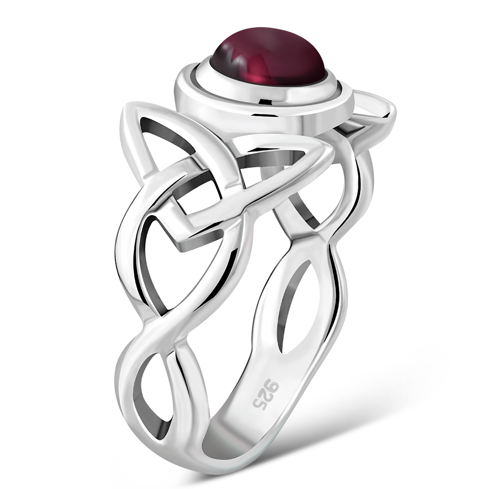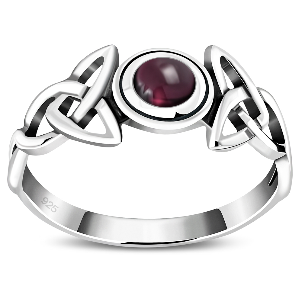Celtic Trinity Knot Garnet Silver Ring, r442