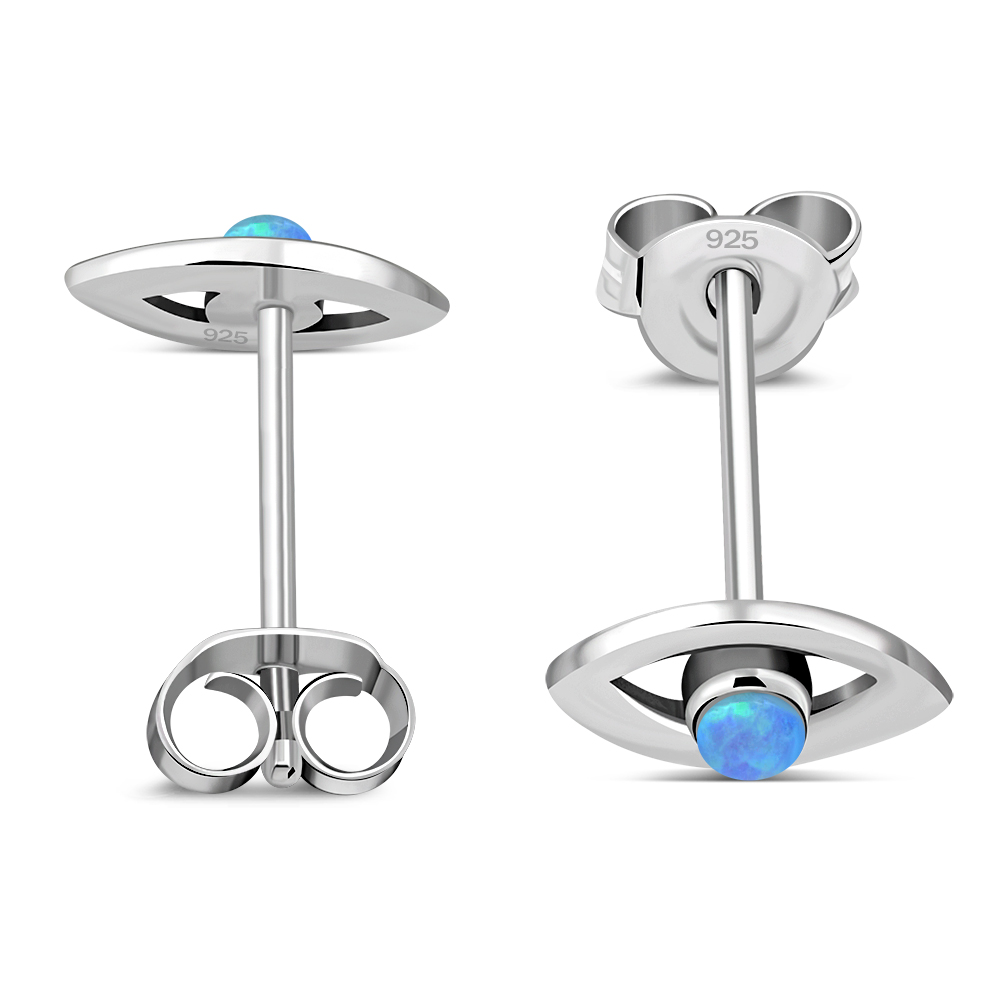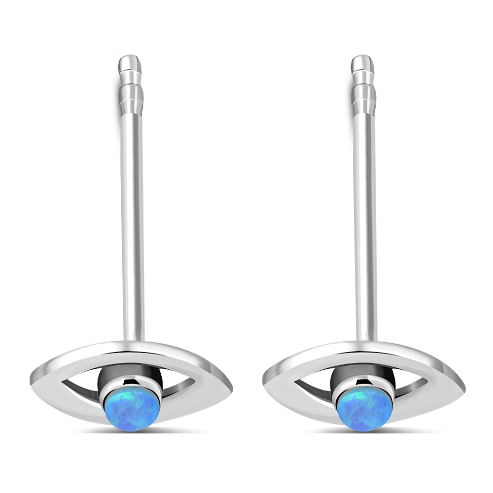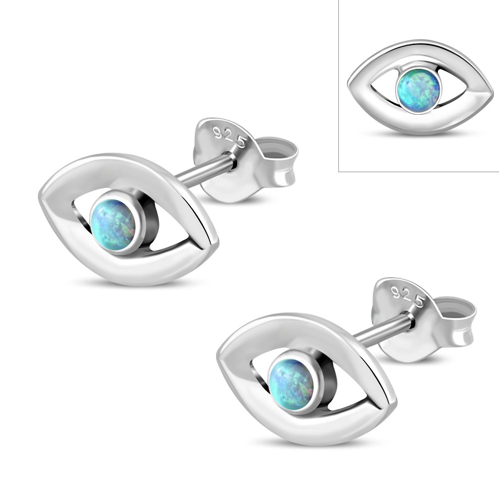 Synthetic Opal Evil Eye Stud Silver Earrings