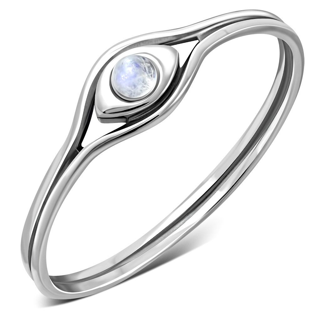 Evil Eye Rainbow Moonstone Silver Ring, r579