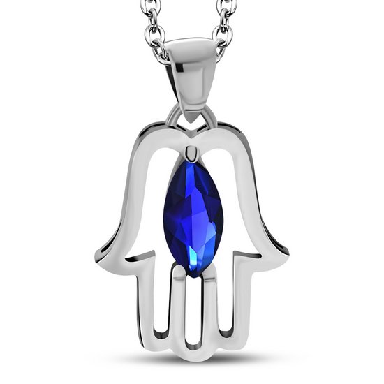 Theme: Chamsa Silver Pendant set w/ Blue Sapphire CZ.