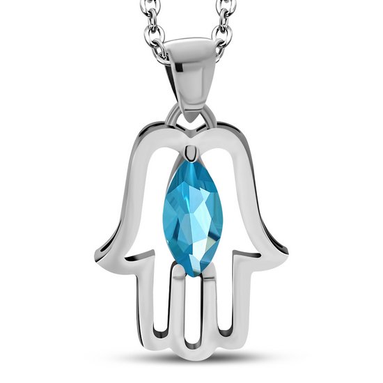Theme: Chamsa Silver Pendant set w/ Blue Topaz CZ.