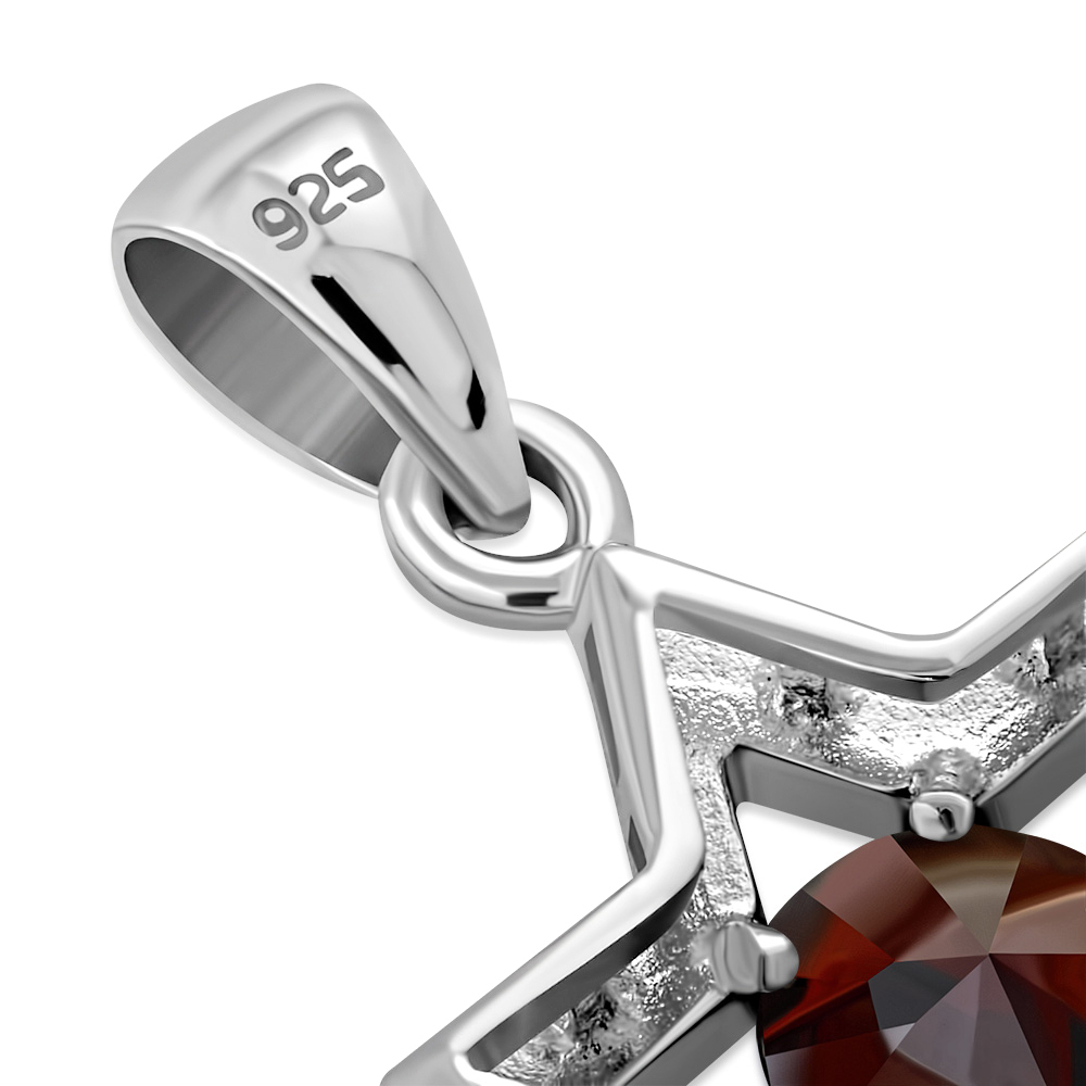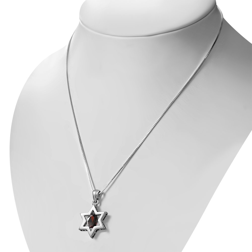 Theme: Garnet CZ Star of David Silver Pendant.