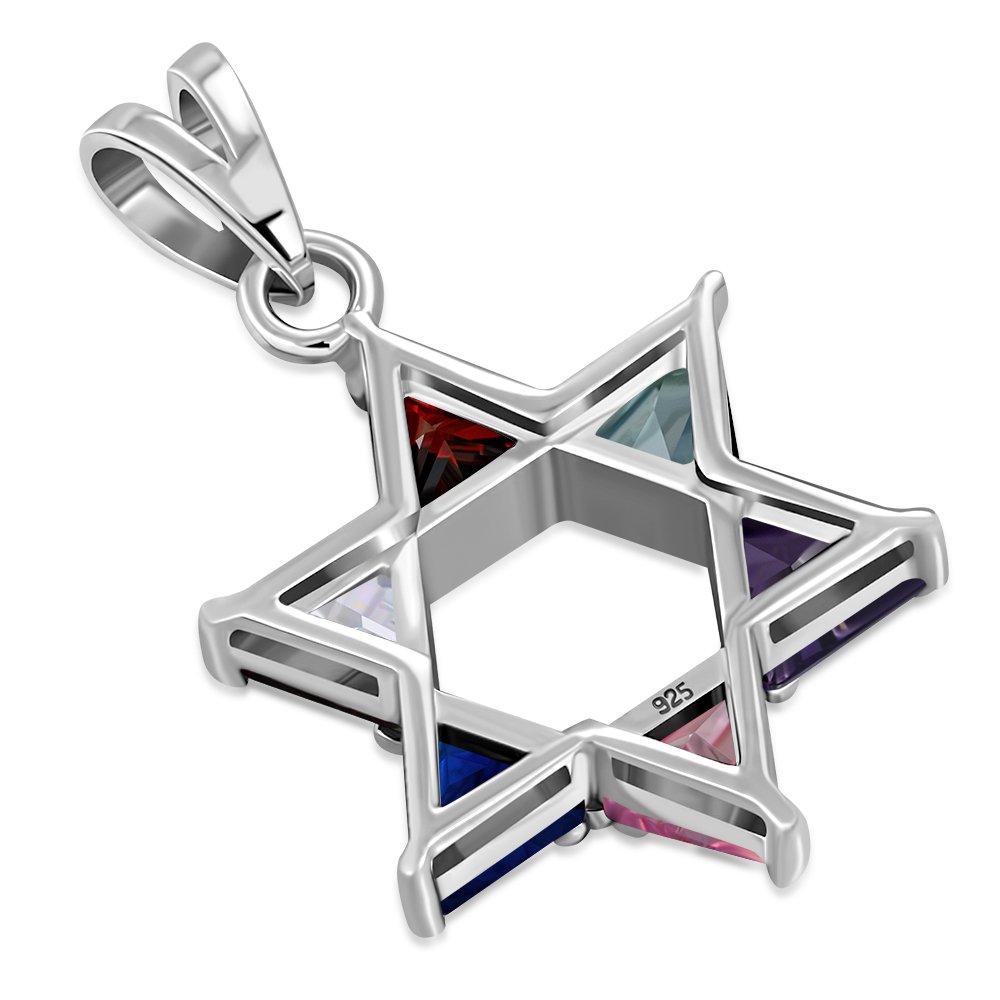 as: Mix Color CZ Large Star David Pendant, Mix Color CZ Large Star