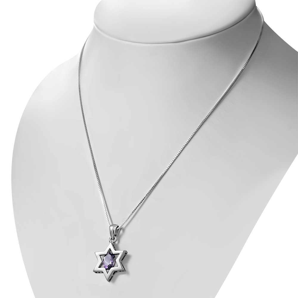 as: Star of David Silver Pendant set w/ Amethyst Stone, Garnet Star of