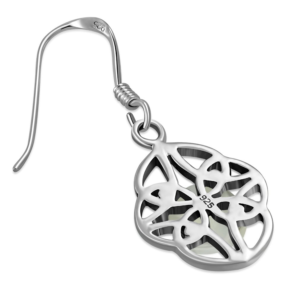 Theme: Rainbow Moonstone Celtic Knot Silver Earrings.