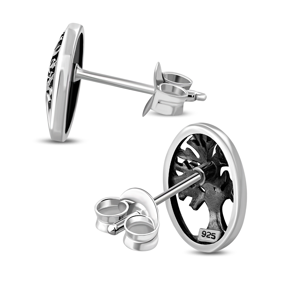 Oval Celtic Tree of Life Silver Stud Earrings