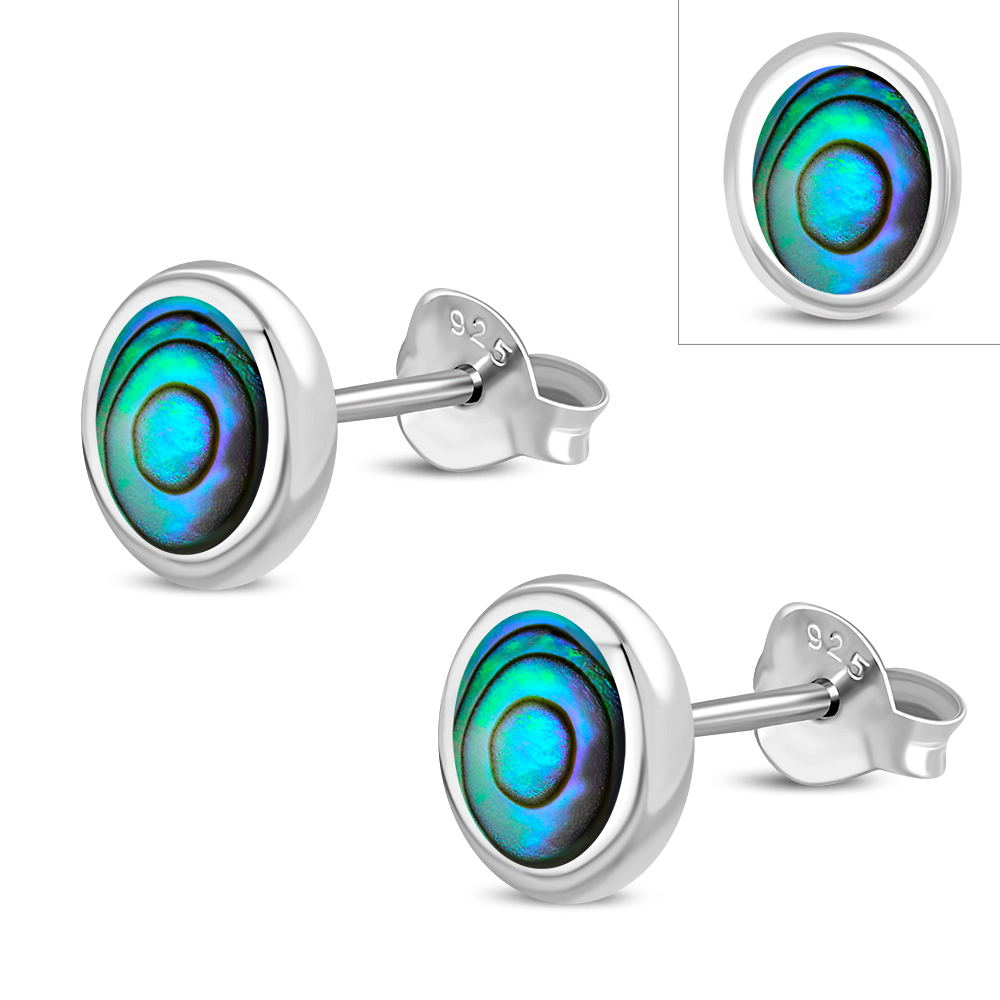 Theme: Abalone Shell Oval Stud Silver Earrings.