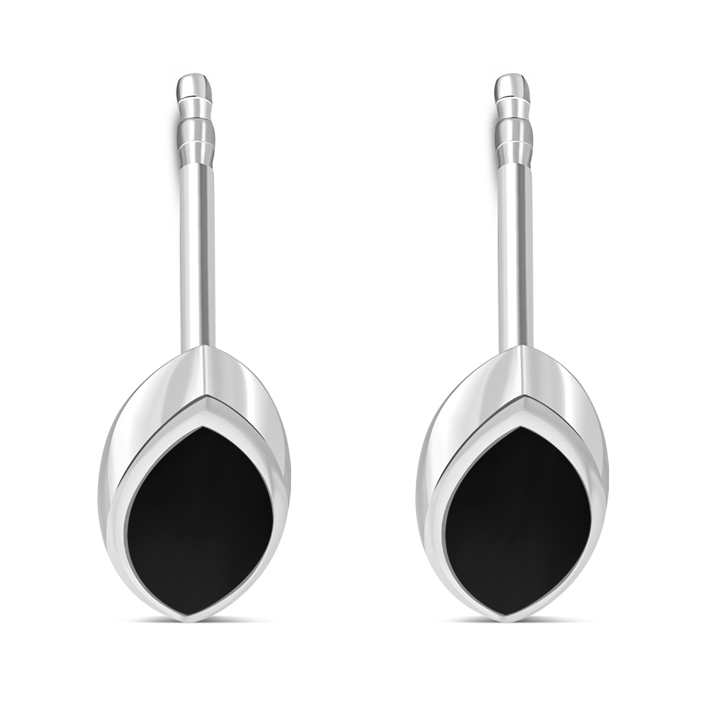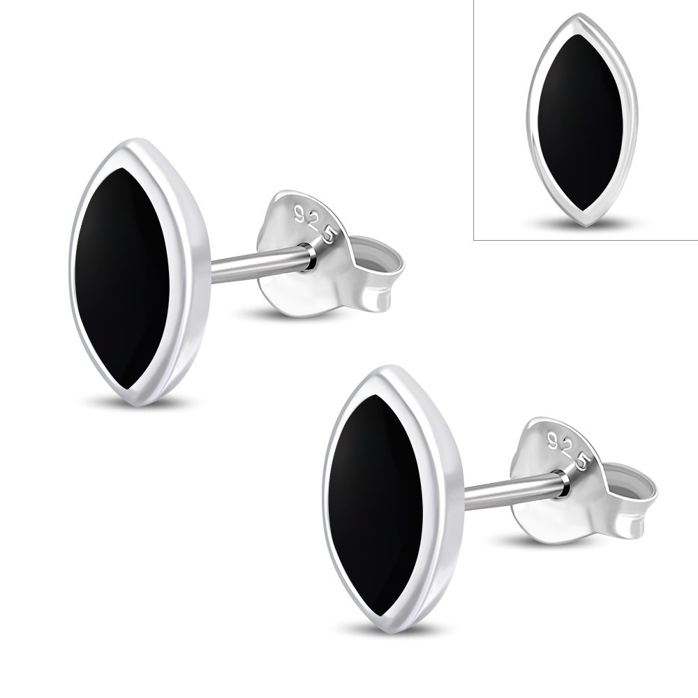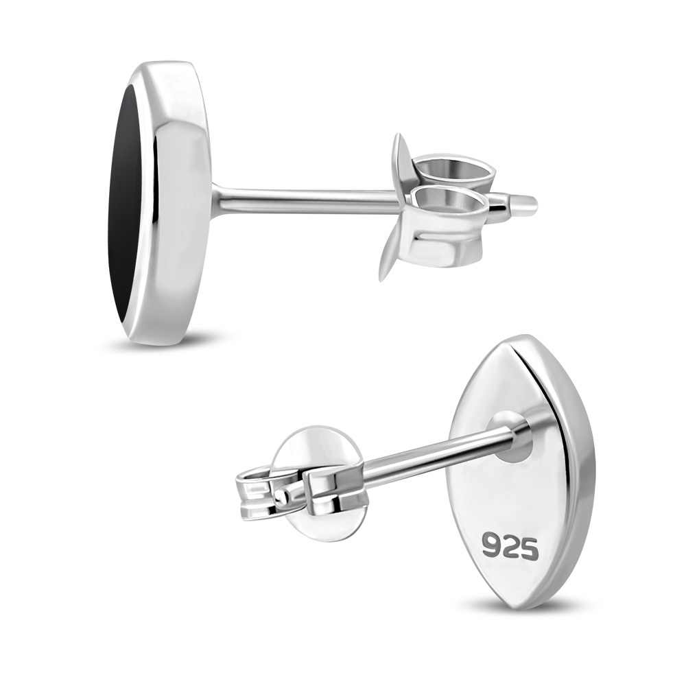 Theme: Black Onyx Lens Shaped Silver Stud Earrings