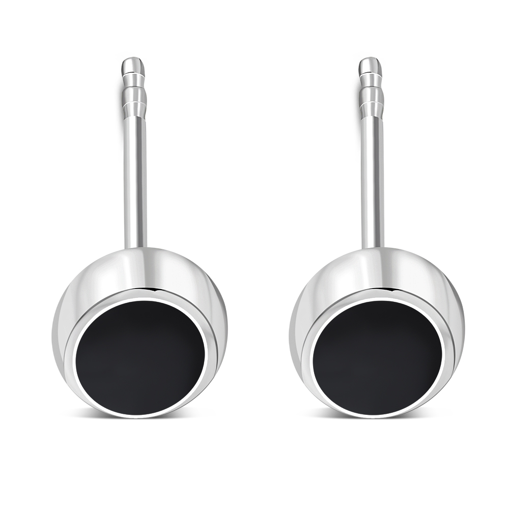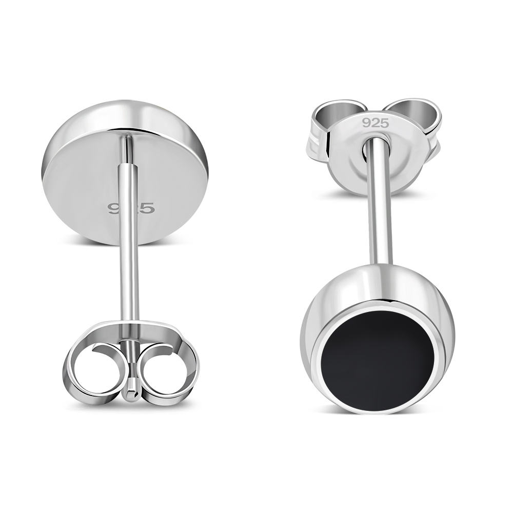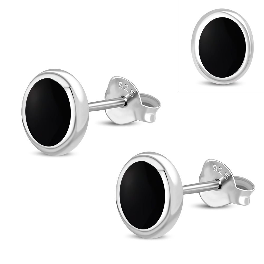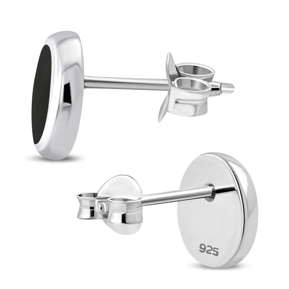 Theme: Black Onyx Oval Stud Silver Earrings.