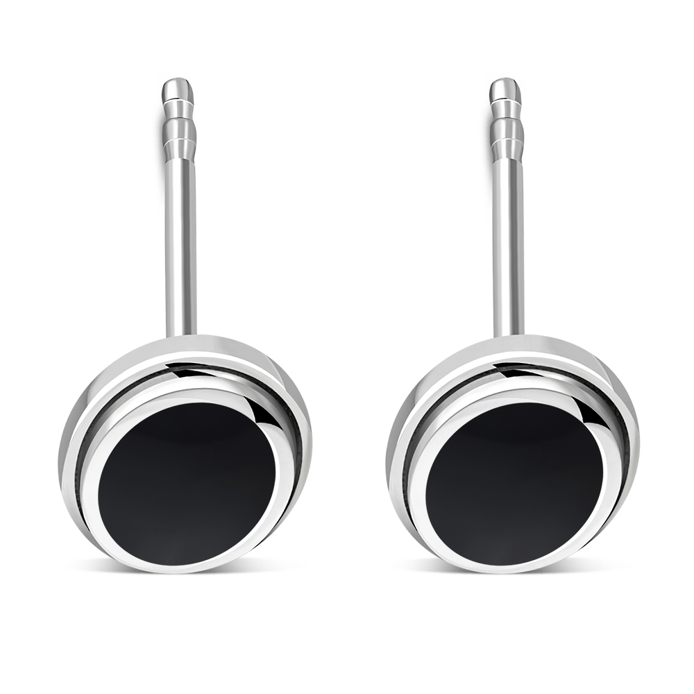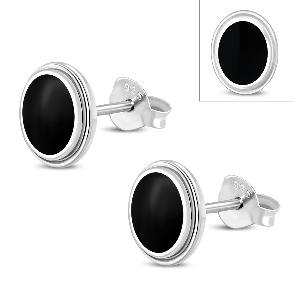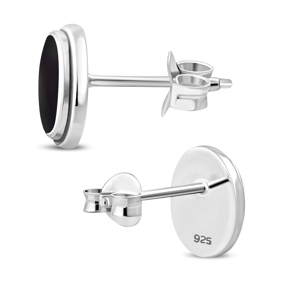 Theme: Black Onyx Oval Stud Silver Earrings.