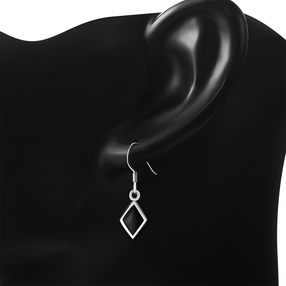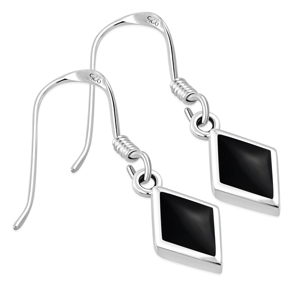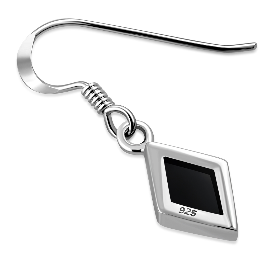 Theme: Black Onyx Rhombus Shape Silver Earrings.