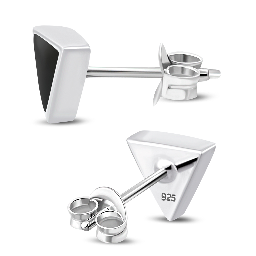 Theme: Black Onyx Triangle Silver Stud Earrings.