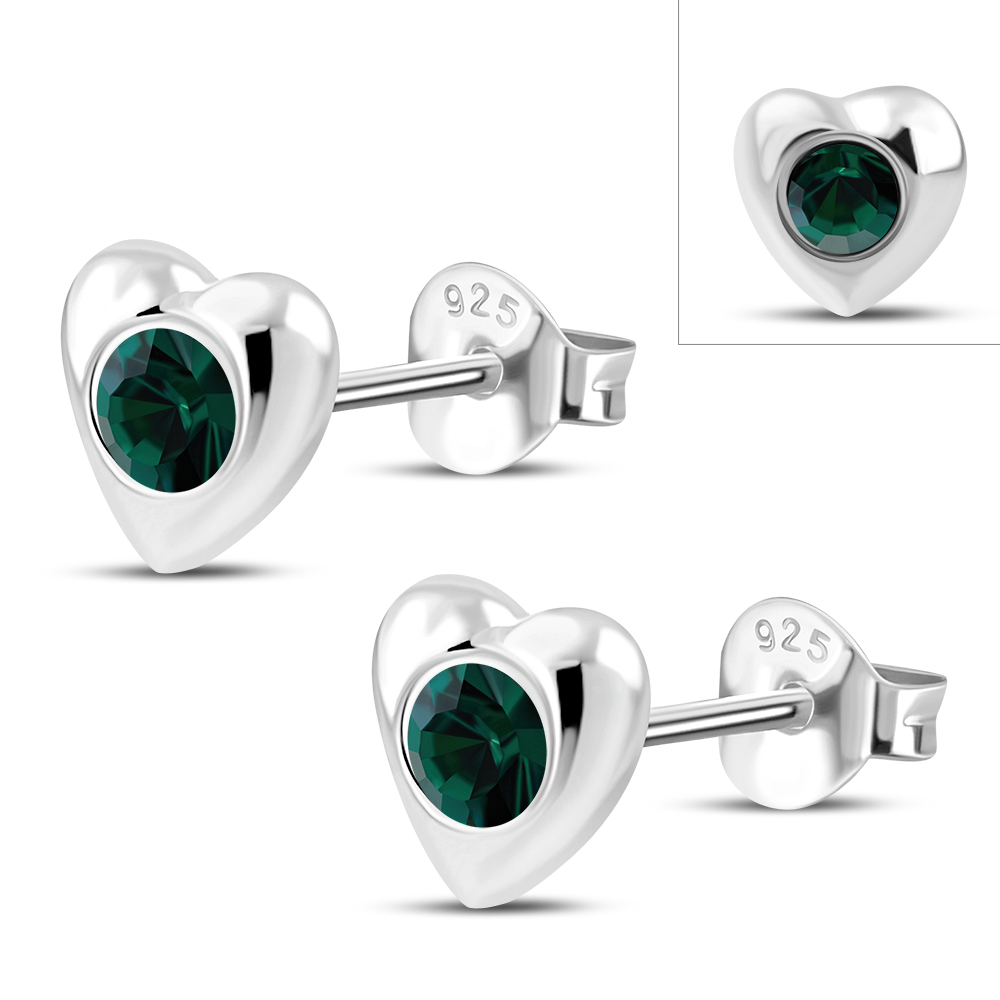 Theme: Green Cubic Zirconia Heart Silver Stud Earrings.