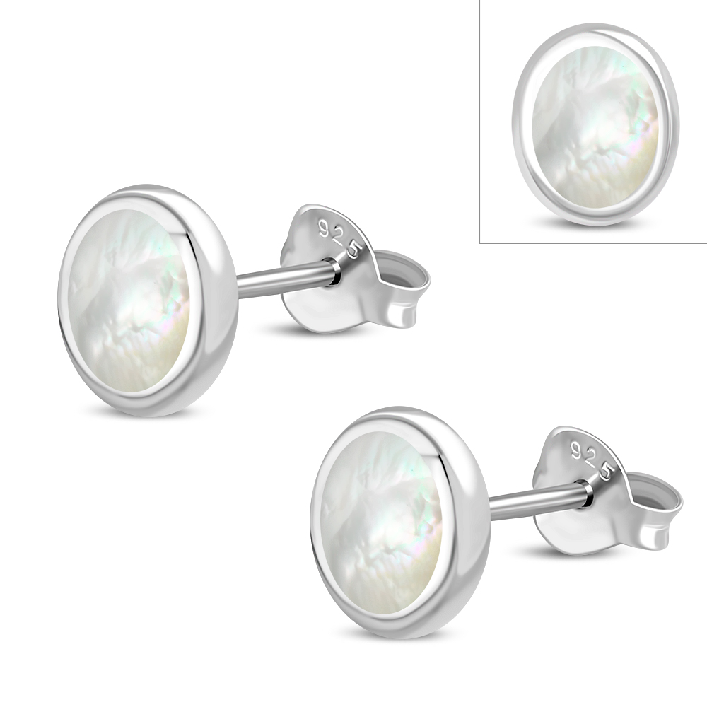 Theme: Mother of Pearl Oval Stud Silver Earrings.