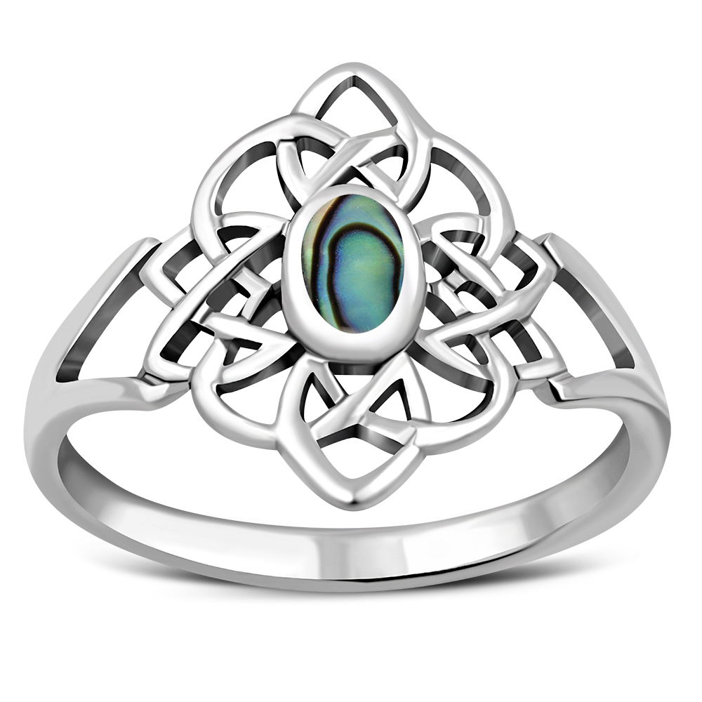 Abalone Shell Celtic Knot Silver Ring