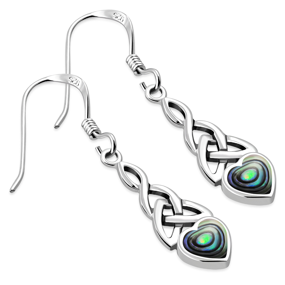 Theme: Abalone Heart Celtic Trinity Silver Earrings.
