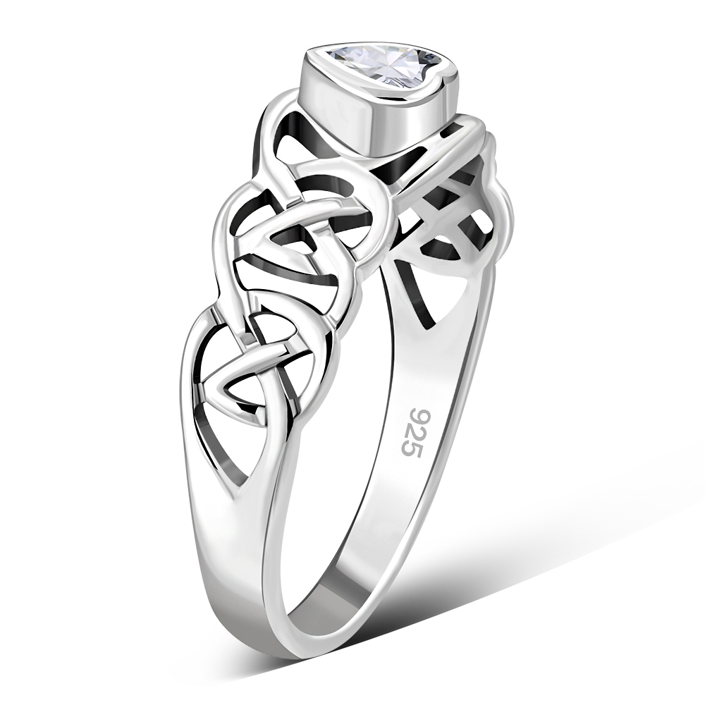 Celtic Knot Clear CZ Heart Silver Ring.