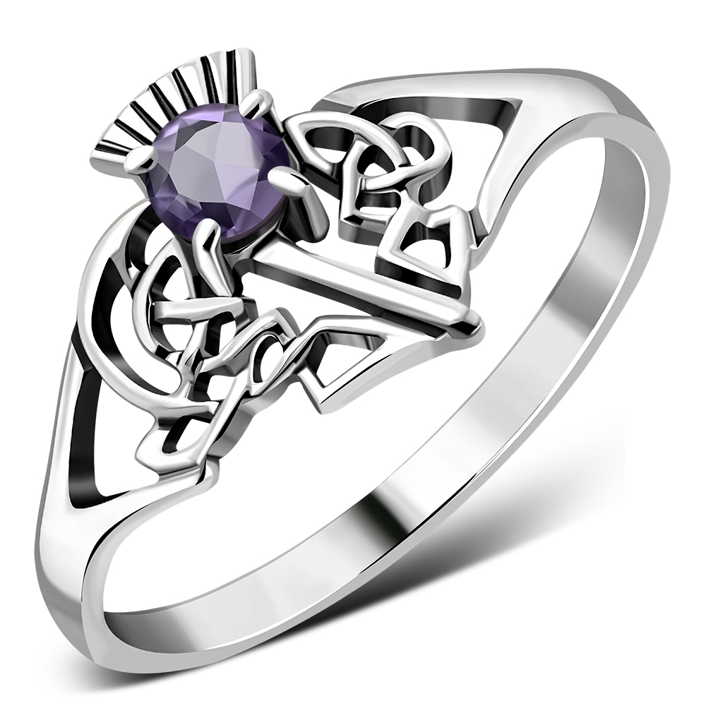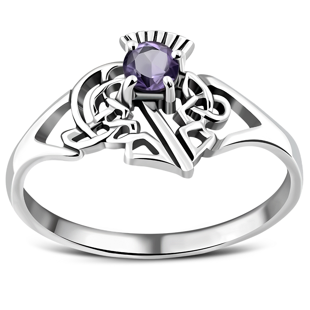 Celtic Knot Thistle Amethyst Stone Silver Ring, r541
