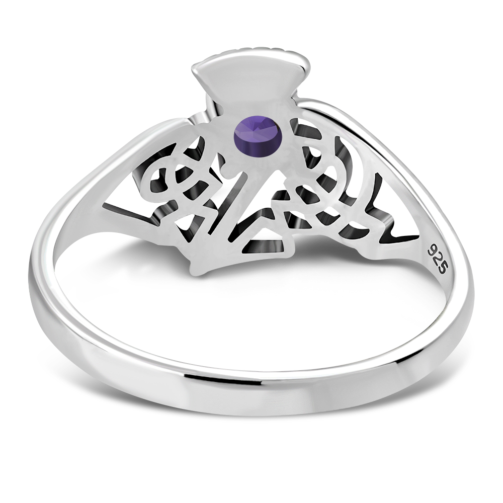 Celtic Knot Thistle Amethyst Silver Ring