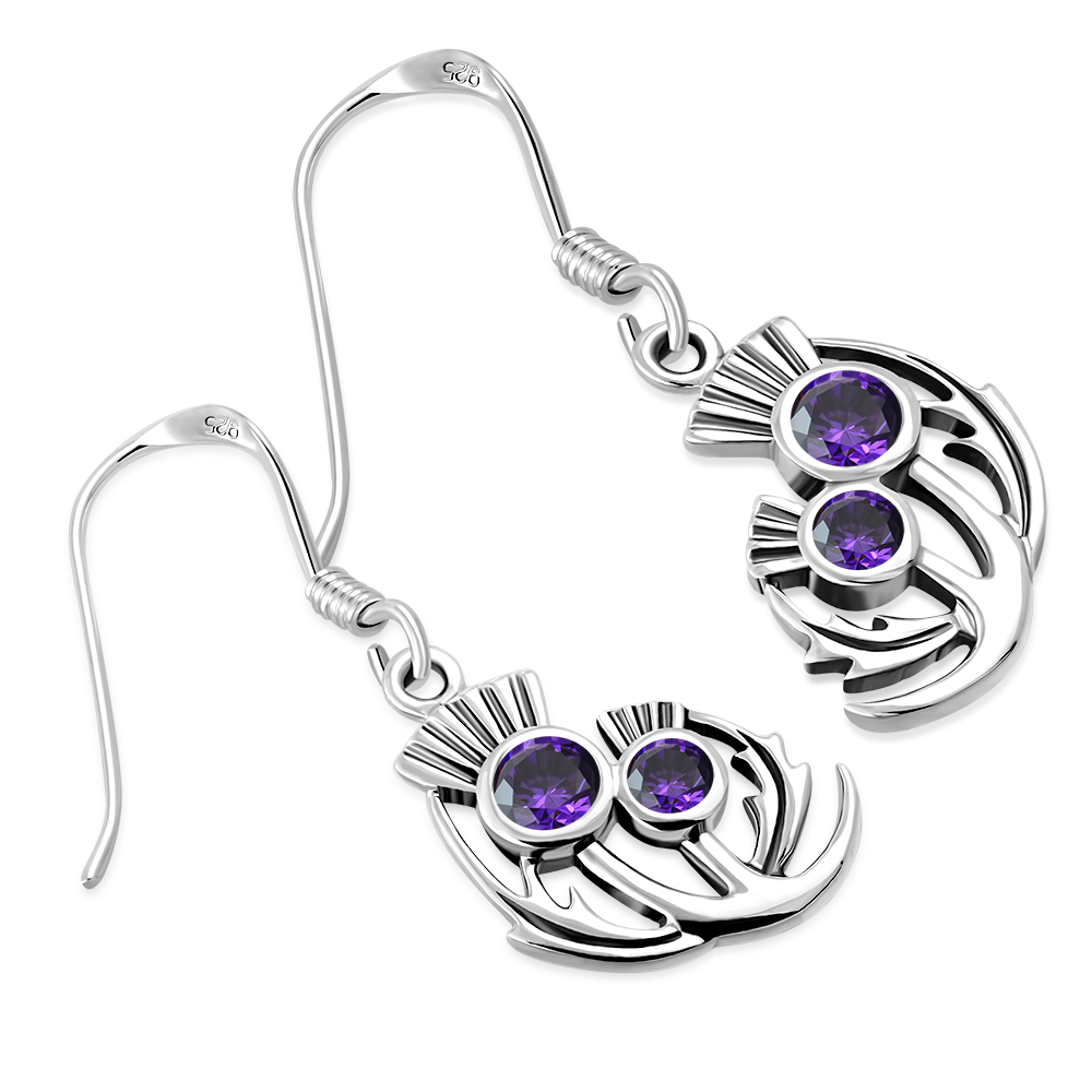 Amethyst CZ Sterling Silver Thistle Earrings