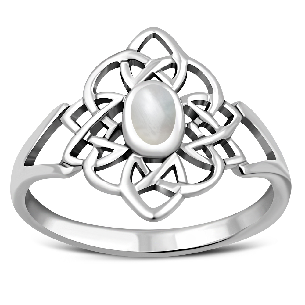 Theme: Mother of Pearl Celtic Knot Silver Ring.