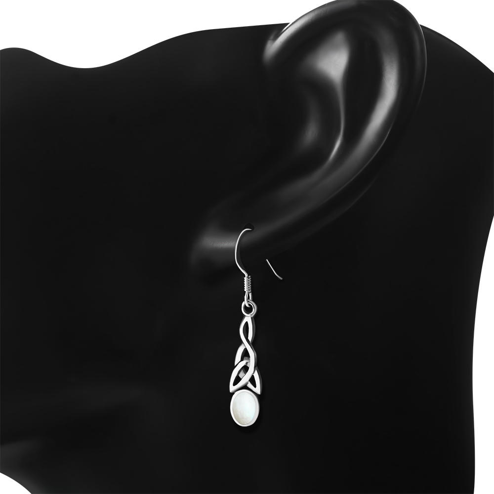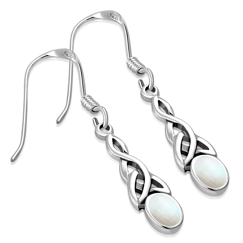 Mother of Pearl Celtic Trinity Knot Silver Earrings