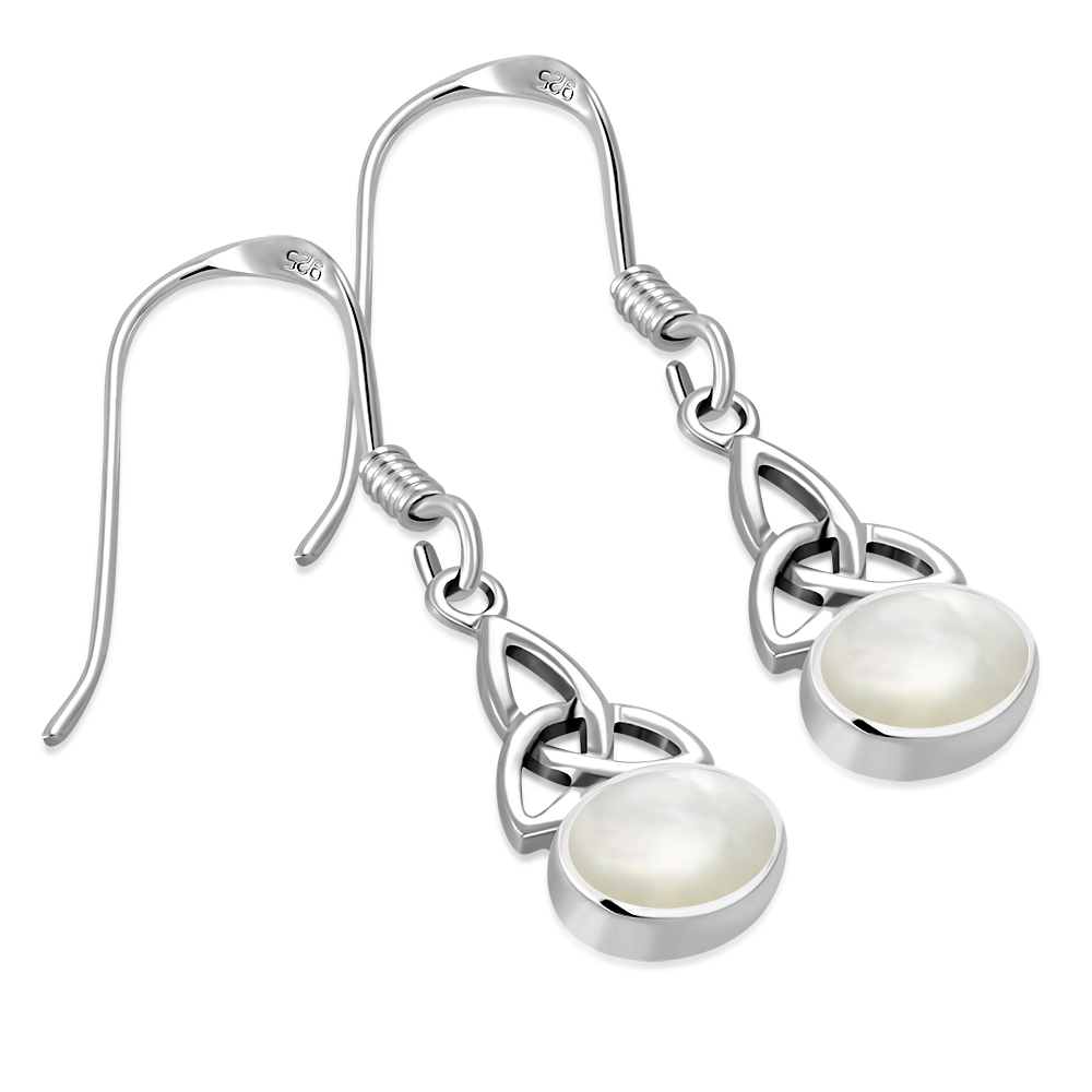 Mother of Pearl Celtic Trinity Knot Silver Earrings