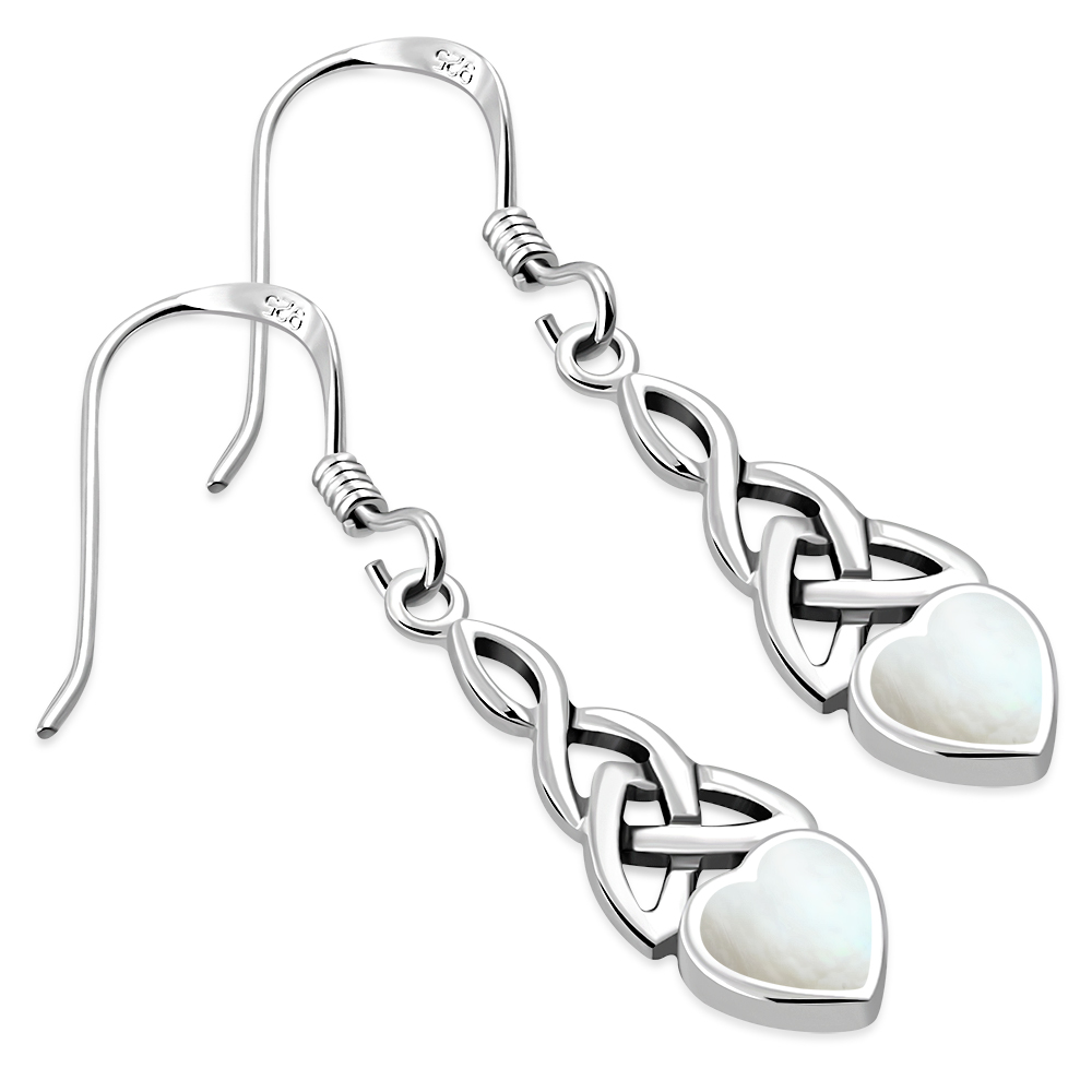 Theme: Mother of Pearl Heart Celtic Trinity Silver Earrings.