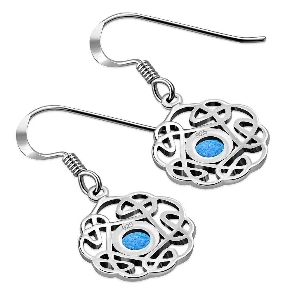 Theme: Synthetic Opal Round Celtic Knot Silver Earrings.