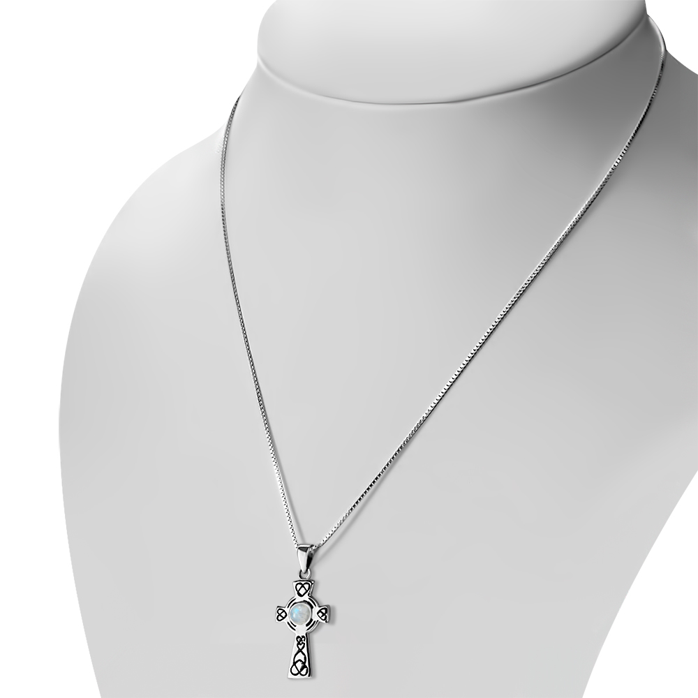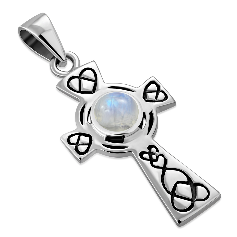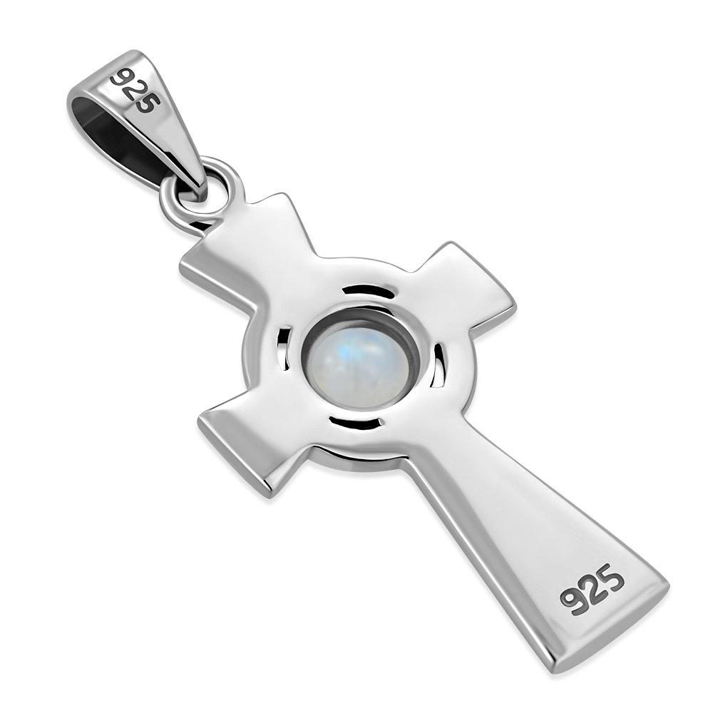Theme: Rainbow Moonstone Celtic Cross Silver Pendant.
