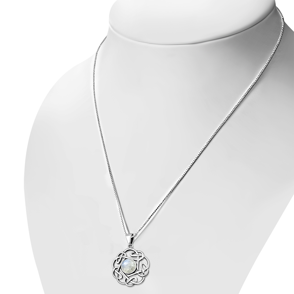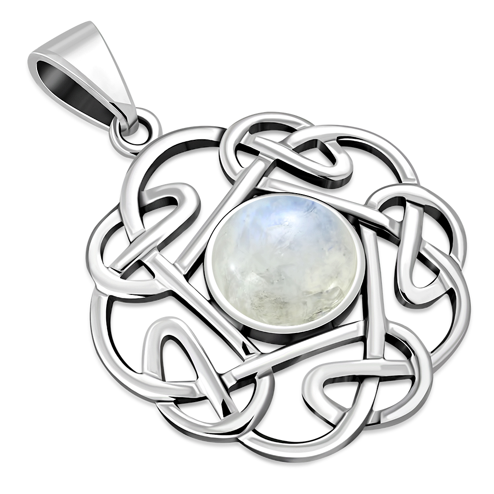Rainbow Moonstone Round Celtic Knot Silver Pendant