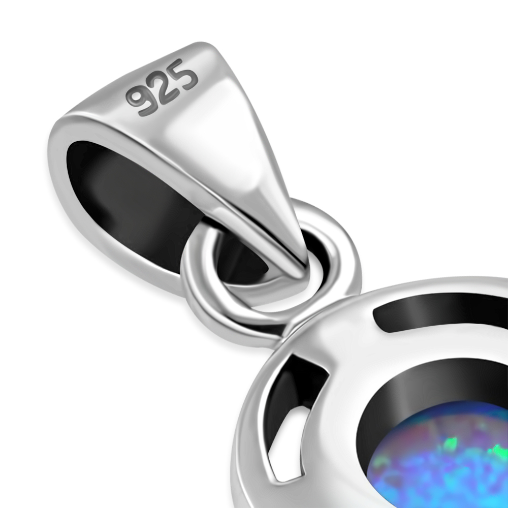 Theme: Synthetic Opal Hamsa Silver Pendant.